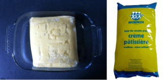 Pour la préparation vous trouverez des recettes sur internet. Pour la crème pâtissière c’est plus simple d’utiliser une poudre Moench (ça marche à tous les coups) que vous parfumerez après.
