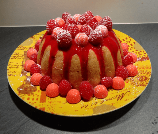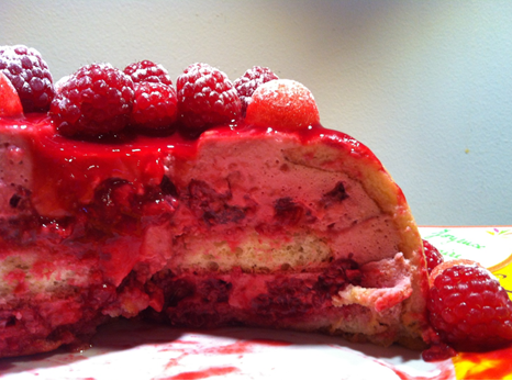 Les étapes : 1- mettez vos feuilles de gélatine à tremper dans un bol d’eau froide. 2- mettez la moitié des framboises surgelées dans une casserole avec un peu de sucre (à doser selon vous goûts, j’avais mis 100g) faites chauffer. 3- une fois chaud passer ce coulis de framboise à la passoire pour obtenir un coulis plus homogène et enlevez les grains. 4- ajoutez vous feuilles de gélatine à ce coulis. 5- dans un saladier à part, mélanger mascarpone, crème et sucre (moi j’avais mis 100g de sucre). 6- verser le coulis dans le saladier et mélanger le tout. 7- prenez votre moule à charlotte et placez y les boudoirs (sur les cotés, pas au fond). 8- versez la moité du mélange du saladier au fond du moule et ajouter des framboises (autre moitié des framboises surgelés). 9- placez des boudoirs au dessus (le moule doit être à moitié rempli). 10- renouvelez l’opération 8. 11- placez des boudoirs au dessus et refermez votre moule à charlotte :). 12- placez le tout minimum 6 heures au frais (au mieux toute une nuit). 13- dégustez 🙂