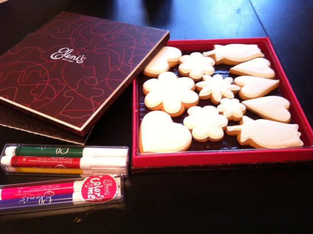 Lors de mon passage à New York je suis allée faire un tour dans la jolie petite boutique de cupcakes d’Eleni’s 🙂 et j’y ai trouvé des cookies à colorier!