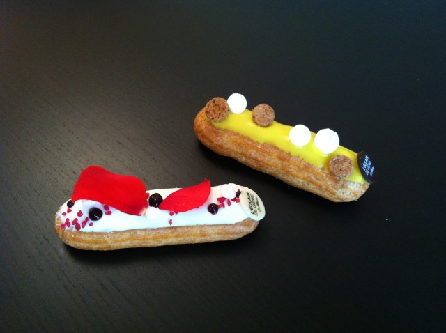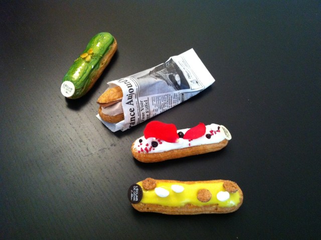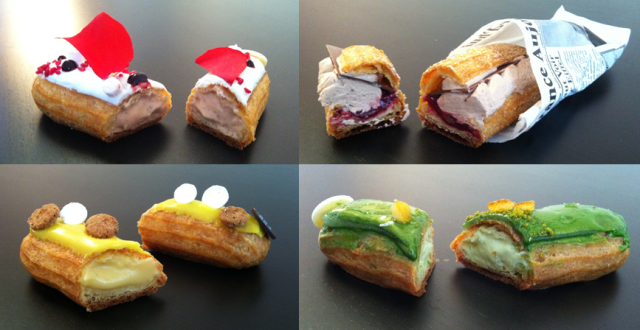 Il y à une douzaine d’éclairs différents allant du plus classique au chocolat en passant par le plus gourmand : caramel au beurre salé, pour arriver aux plus originaux : l’éclair foret noire!