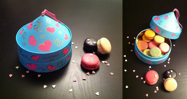 Et puis si vous êtes seul (s) pour la Saint Valentin c’est quand même plus sympa de se boulotter une boite de macarons Ladurée qu’une boite de pop corn devant la télé! ^^