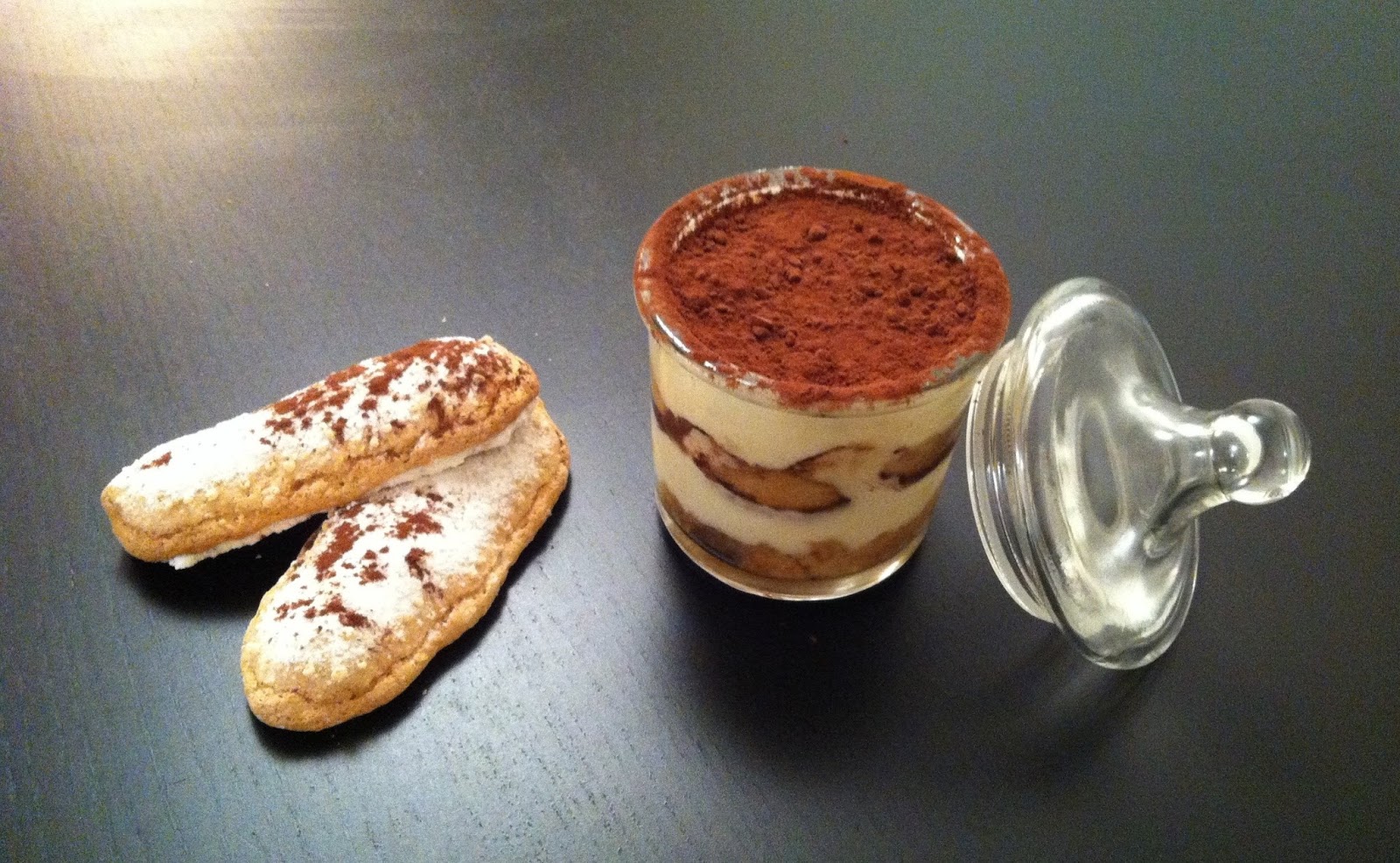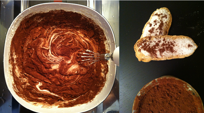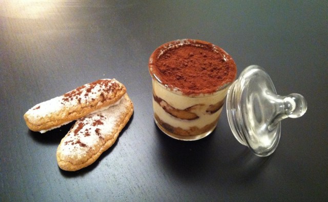 Les ingrédients (pour 6 personnes): 150g de boudoirs (2 boites)/ du rhum (2 cuillères à soupe)/ de la liqueur d’amaretto (2 cuillères à soupe)/ du sucre de canne (2 cuillères à café) – peut etre remplacé par une cuillère à soupe de sucre/ 3 oeufs/ 80g de sucre/ 250g de mascarpone