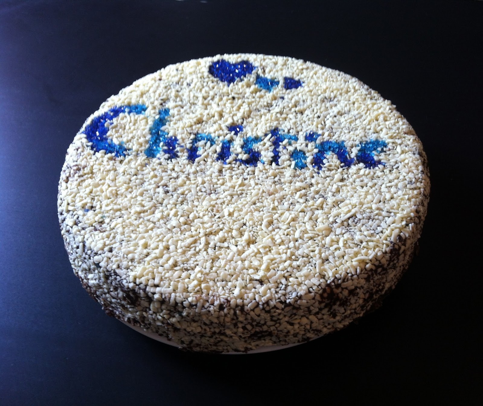 Alors c’est un gâteau au chocolat que j’ai fourré à la crème et que j’ai recouvert de copeaux de chocolat blanc et de sucre coloré! Il faut prévoir un peu de temps quand même mais le résultat est top!
