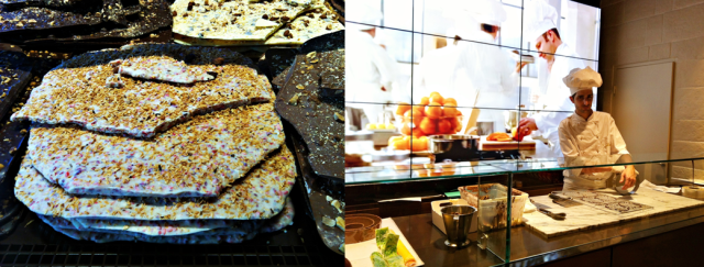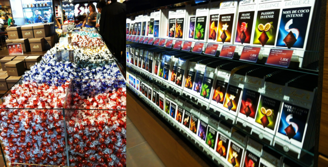 Vous attrapez un petit sachet et vous sélectionnez, à la pièce, vos Lindor préférés -pour moi Stracciatella, chocolat au lait et champagne. Ils ont aussi un mur de tablettes de chocolat devant lequel il est impossible de faire un choix raisonné de moins de trois tablettes.