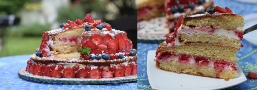 La Génoise: 400g de farine / 400g de beurre / 400g de sucre / 1 sachet de levure / 8 œufs / 4 cuillères à soupe d’extrait de vanille / 2 moules à gâteaux de tailles différentes.