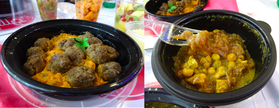 Pour le plat nous avons choisi un tajine de boulettes de bœuf et un couscous de poulet aux ognons, tous deux accompagnés de semoule bien sur.
