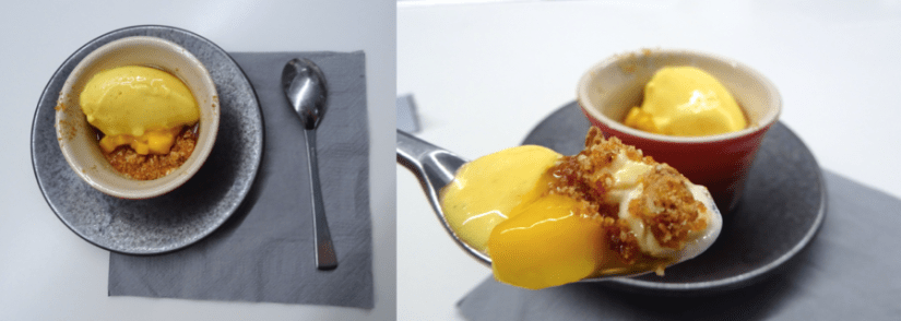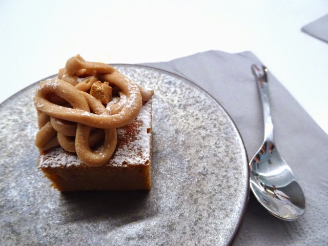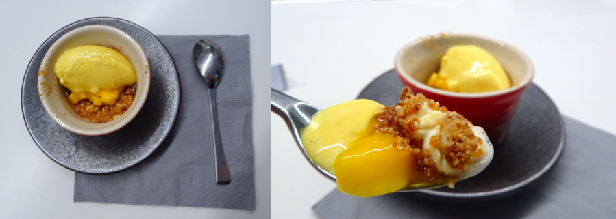 Le dessert est génial, à chaque bouchée on reconnaît la crème au sirop d’érable qui fond dans la bouche, la nougatine maison qui croustille,