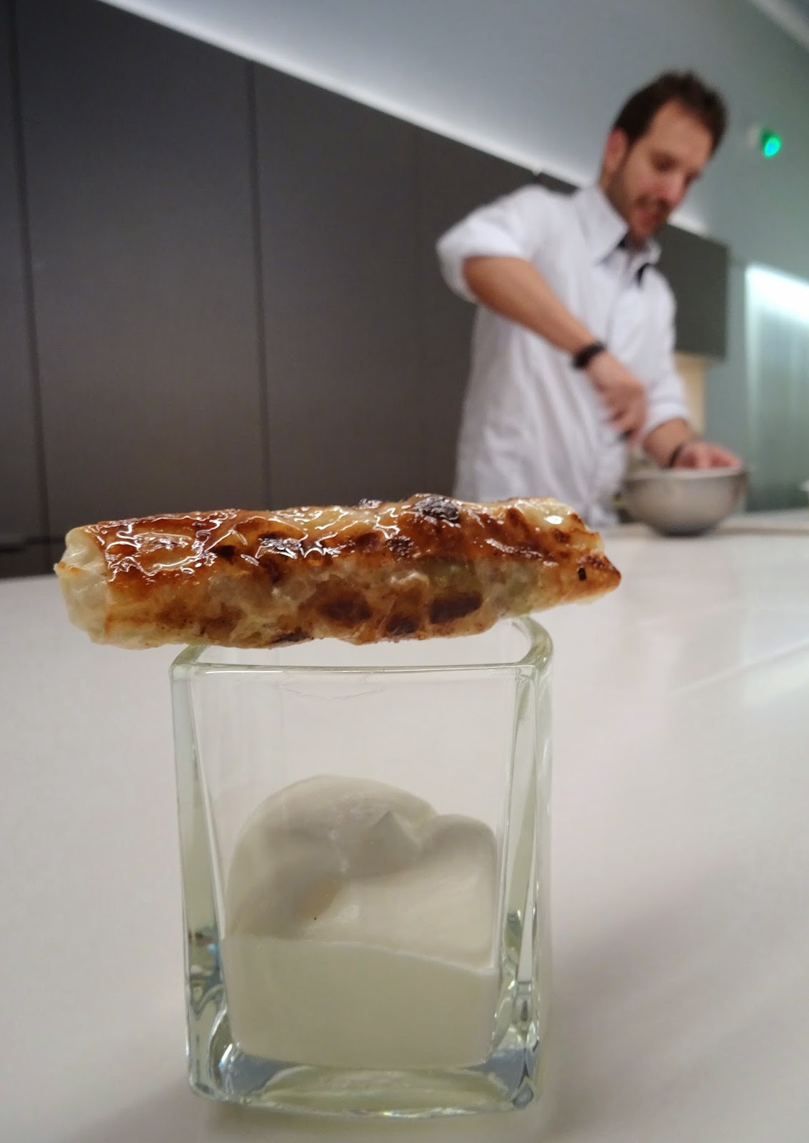 Le Chef prépare ensuite une chantilly à la menthe afin d’accompagner les nems,