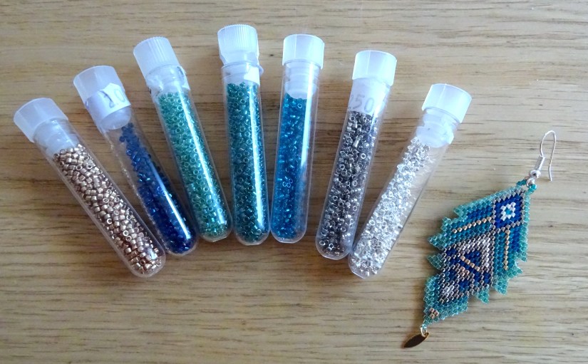 Cette fois ci je teste le tissage de boucles d’oreilles en perles Miyuki.
